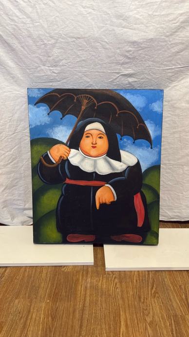 Slika, akvarel, na temu Fernando Botero 60*50cm, opatica na kiši