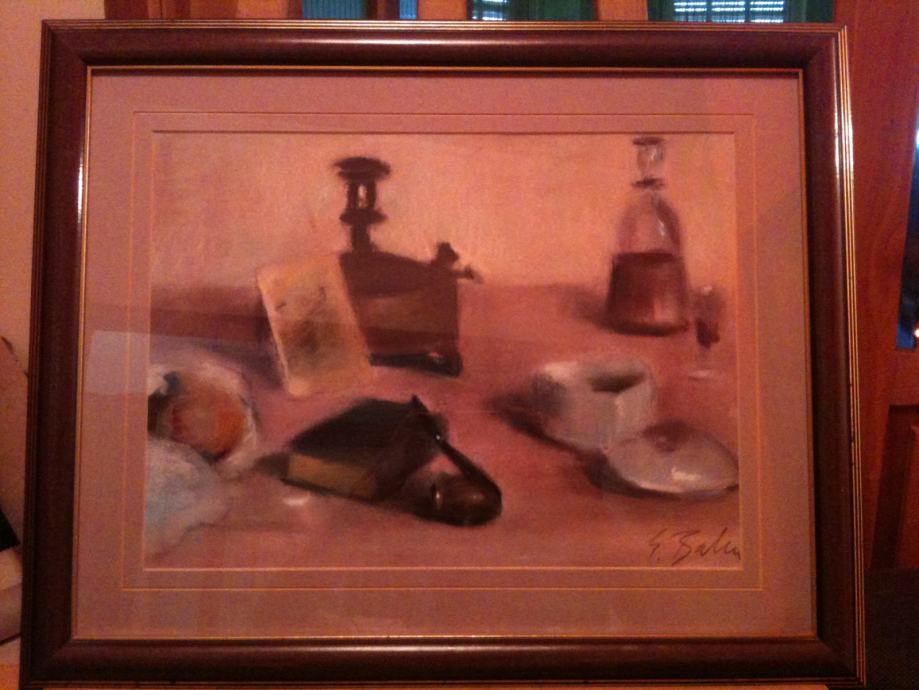 slika, pastel, mrtva priroda, uokvirena, potpisana