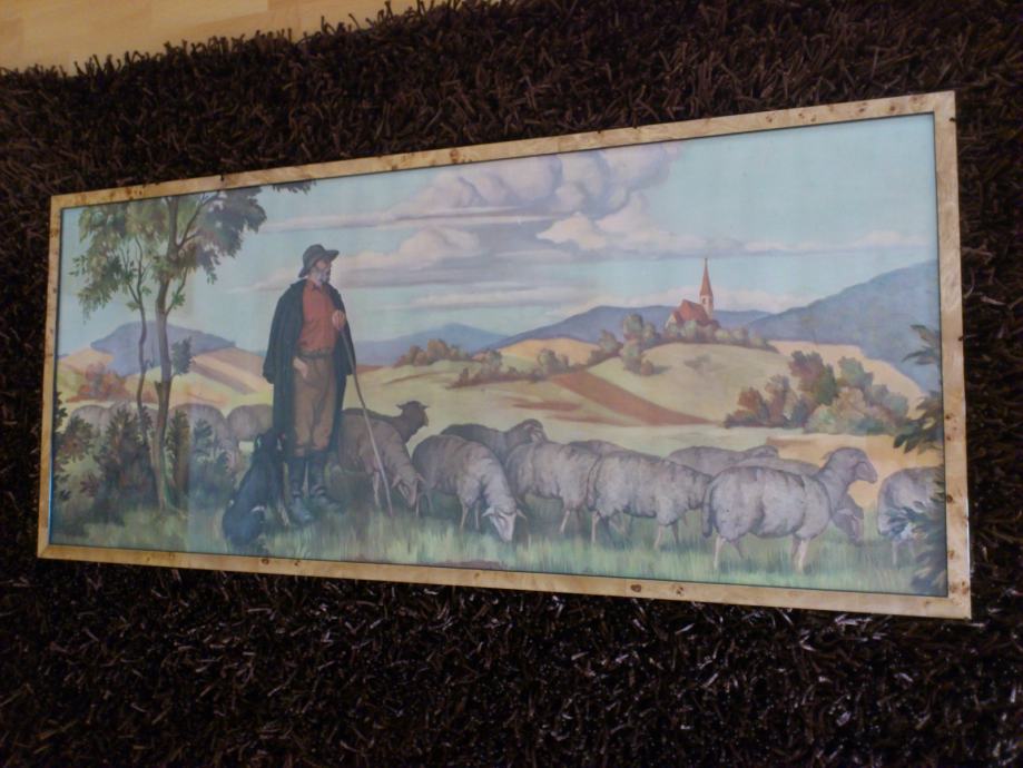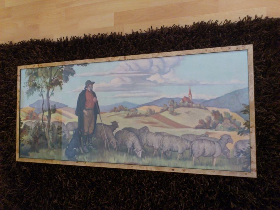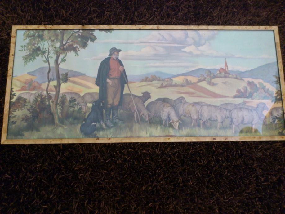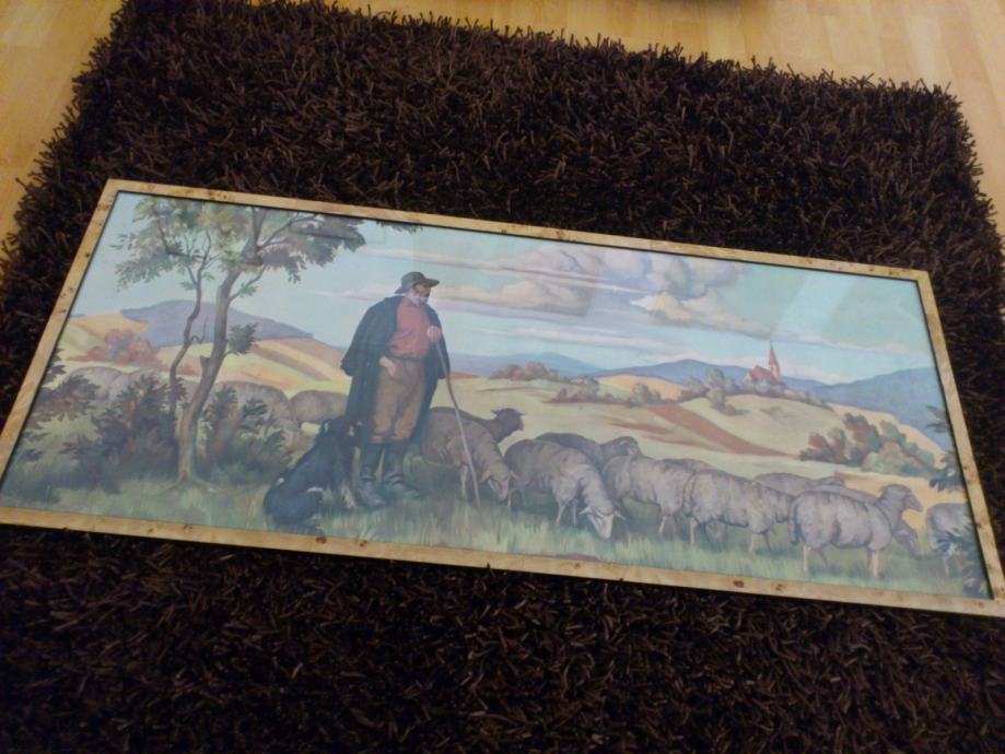 Prodajem svetu sliku - Pastir s ovcama, dimenzije 119 x 52.