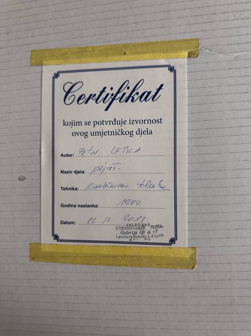 Uokvirena slika s certifikatom