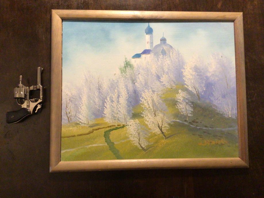 2)Slika crkve na brežuljku 11€ kn, vrlo dobro stanje 55x45 cm, nema staklo. Slike su prave ( prava boja), nisu posteri.