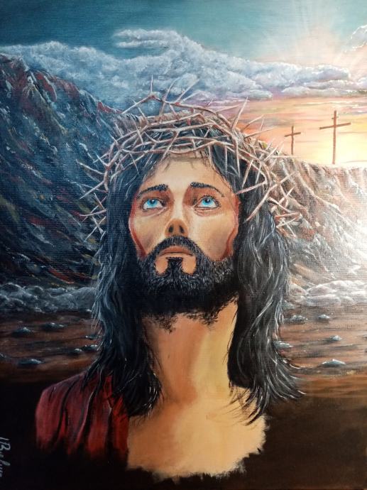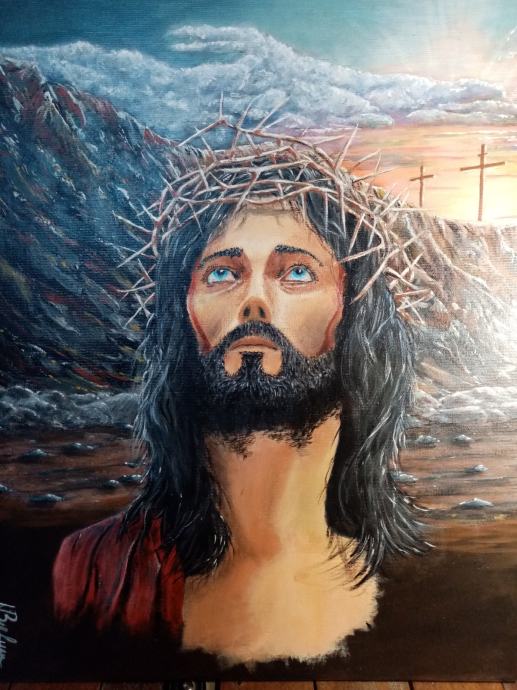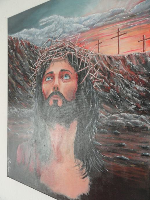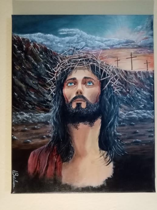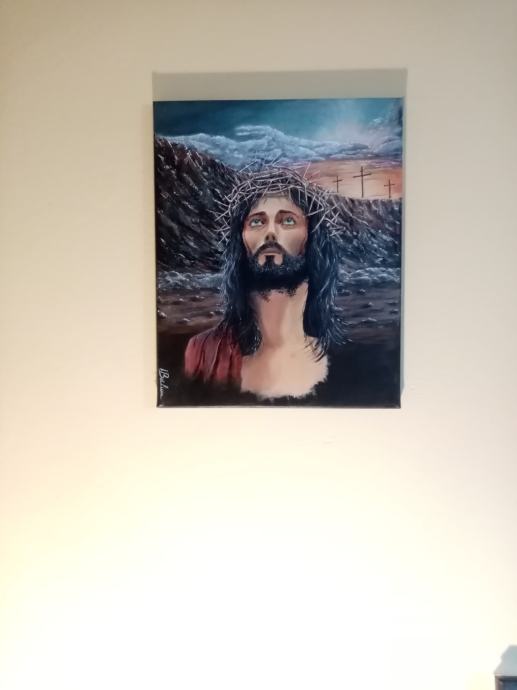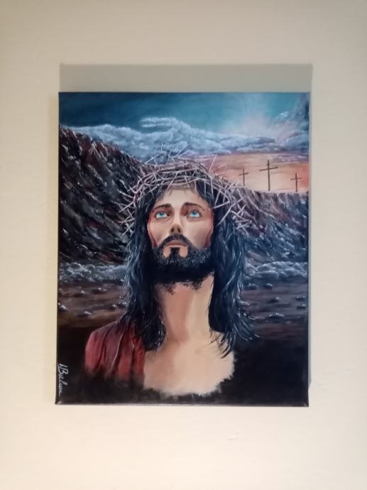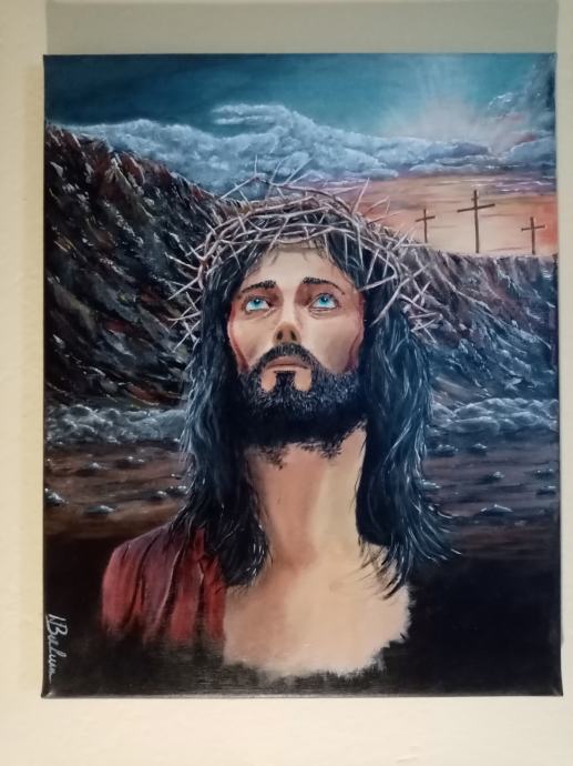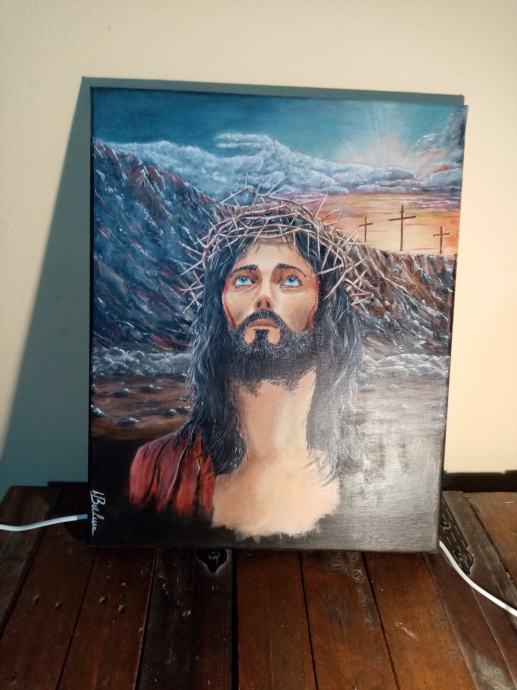 Slika je naslikana u akrilnim bojama na profi platnu dimenzija 50x40 cm i čvrstom okviru debljine 2 cm.