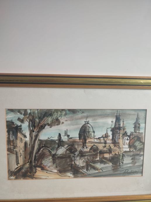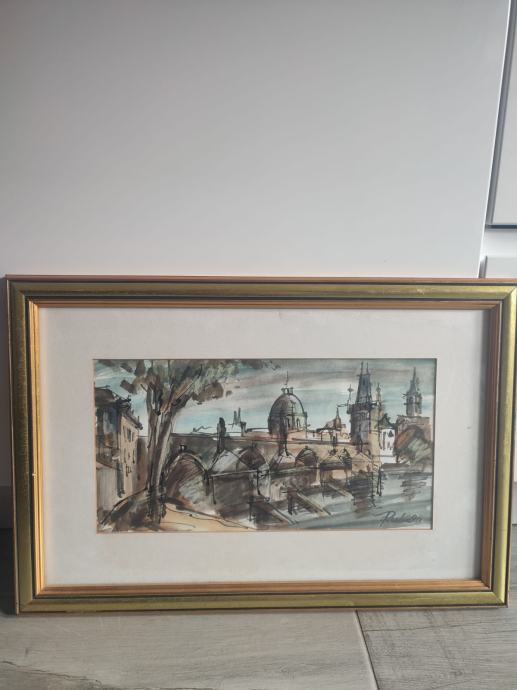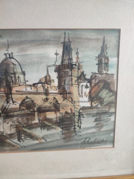 slika Praga, Karlov most, s potpisom, kupljeno u Pragu na Karlovom mostu
