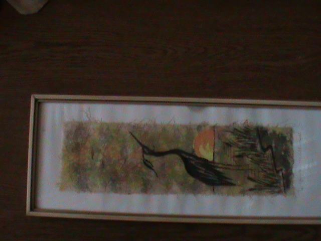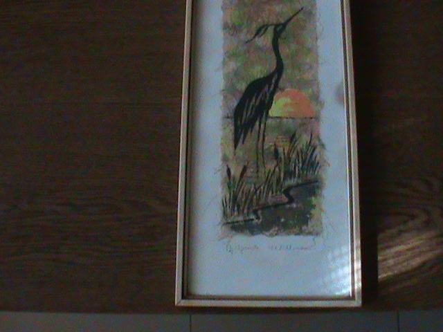 NEKA VRSTA PAPIRUSA, CRNI OTISAK PTICE I DIJELOVI OBOJANI AKRILNIM BOJAMA