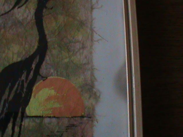 OKVIR IMA MANJIH OŠTEĆENJA, NEŠTO MRLJA NA BIJELOJ PODLOZI NA KOJ JE PAPIRUS, MRLJE OD VLAGE NA PAPIRU NA POZADINI