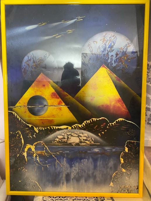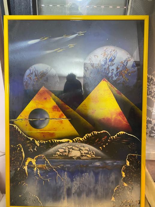 Planeta zemlja Žuti ram, ostakljen. Efektno na zidu. Dimenzije slike sa okvirom 73/53 cm.