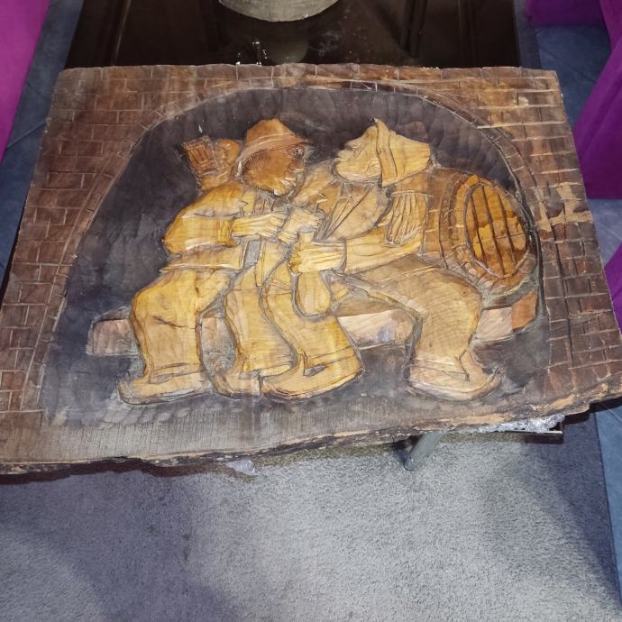 PRODAJEM SLIKU REZBARENO DRVO , DVA PAJDAŠA U KLIJETI, DIMENZIJE 65X50