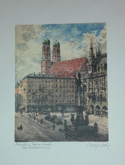 Slika - ručno obojana litografija Willy Scholz : Katedrala Munchen
