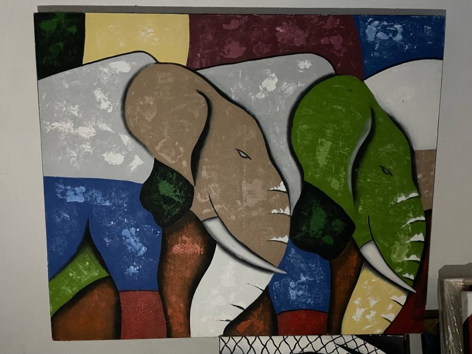 Slika, tempera, tema sreća, slonovi,dimenzija 120cm*90cm