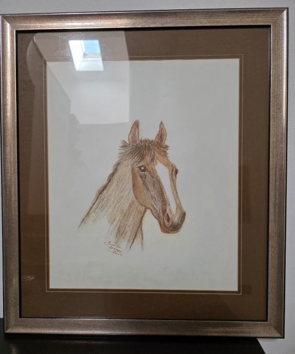 Slika konja, suhi pastel na papiru. 43x49 cm