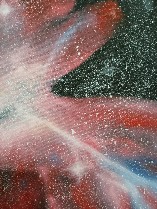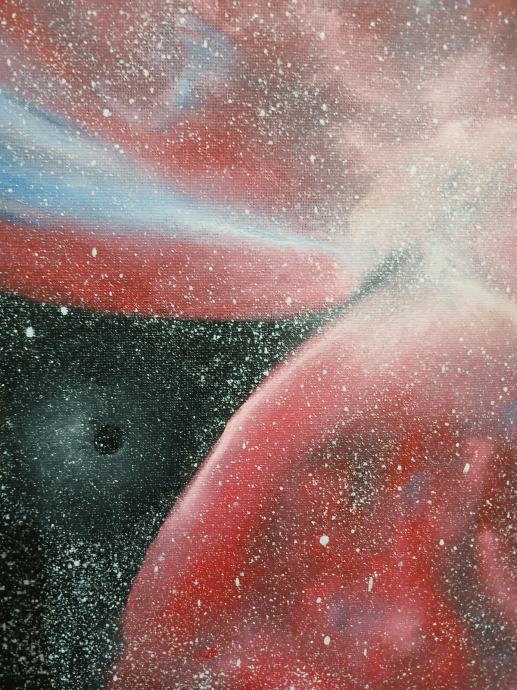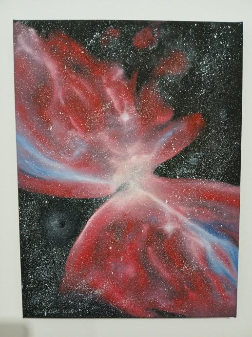Slika prikazuje svemirsku maglicu (eng. nebula), ulje na platnu.