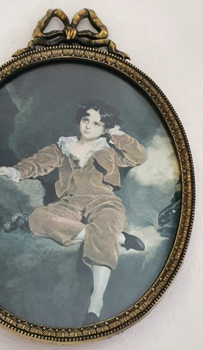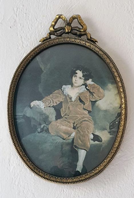 Vrlo dekorativna slika print na svili u krasnom ovalnom okviru u secesijskom stilu