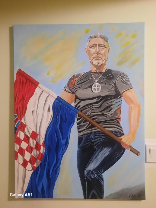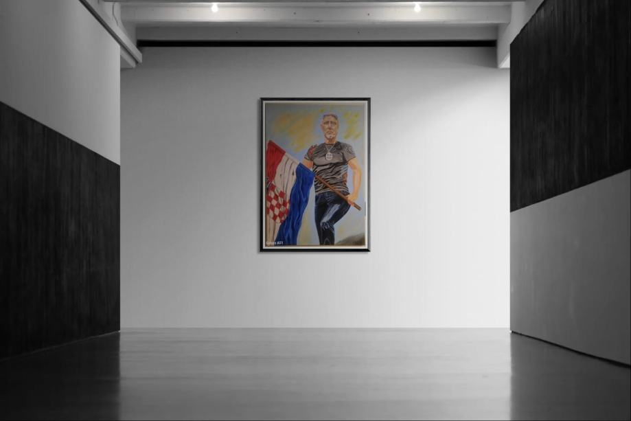 Original portret na platnu, rađen tehnikom akrila. Impregniran lakom.