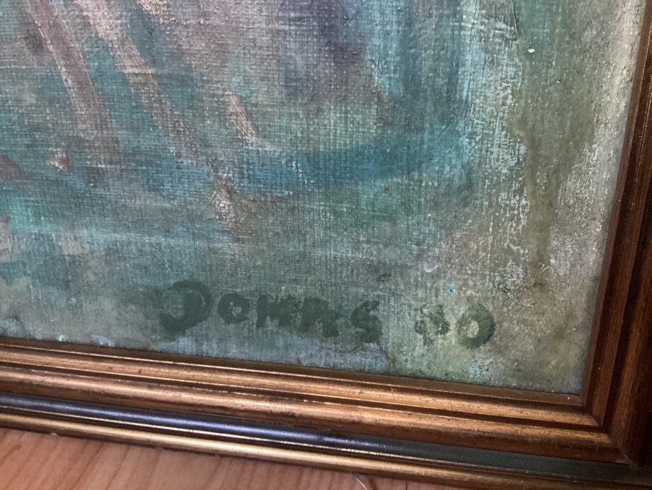 Ne znam tko je slikar, ali vidljivo je da je riječ o kvalitetnom slikaru, vjerojatno je slikar neki hrvatski slikar ‘srednje’ kategorije, ali nemam vremena istraživati koji. Potpis piše ‘Domas’ ili tako nešto.