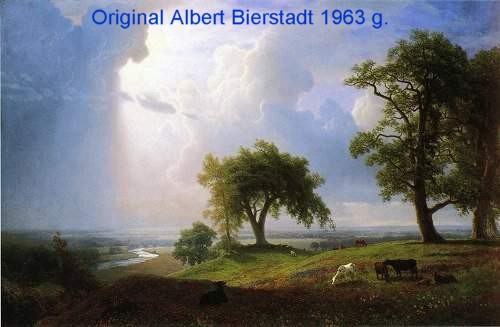 Slika ,ulje na platnu 70 x 50 cm, kopija po originalu od Alberta Bierstadta 1863 g. Slika je slikana rukom nedavno i nije okvirena.