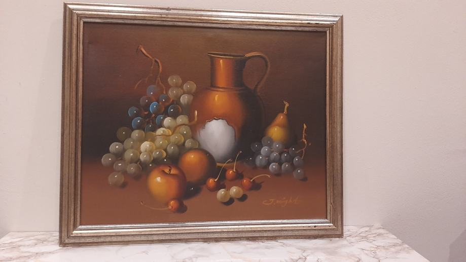 Slika ulje na platnu, mrtva priroda. Dimenzije slike sa ramom 60×50 cm. Kontakt isključivo na broj moba 097 664 55 25, whats up ili viber.