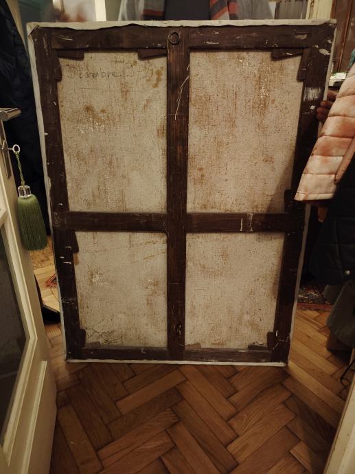 Ima jedno malo oštećenje na platnu ali nije vidljivo( zadnja slika)