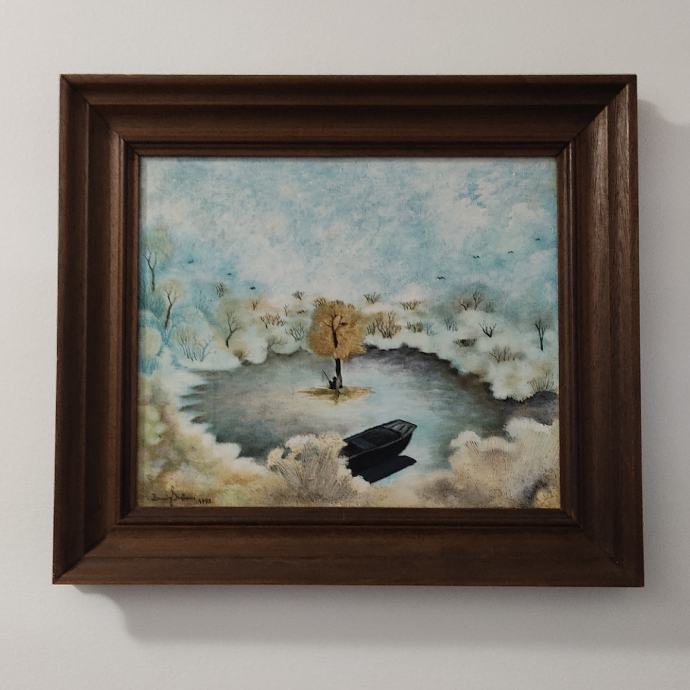 Slika ulje na platnu ribić nastala 1993. godine. Umjetnik Damir Barberić iz Đurđevca.