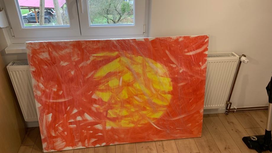 Prodajem ručno slikanu sliku ulje na platnu samoukog slikara. Zalazak sunca.Veličina 1.50m / 1m . Metar i pol sa metar. Cijena 100€Tel:092/353/4380
