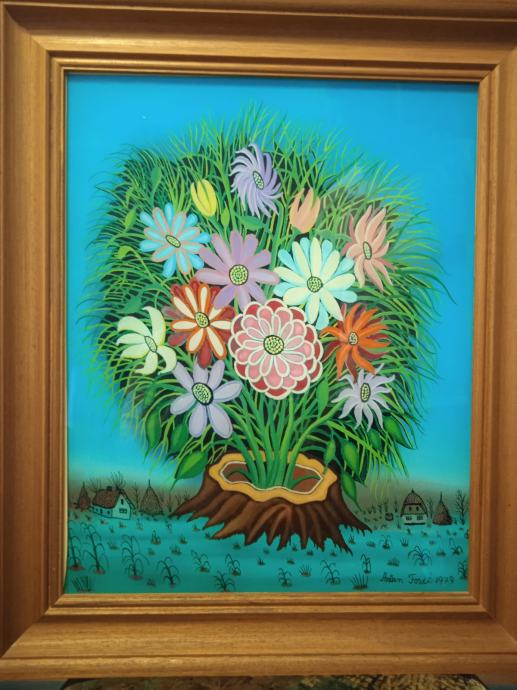 Uokvirena slika ulje na staklu, akademskog slikara naivca Antuna Fosića.
