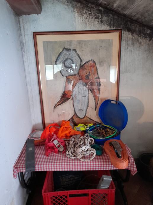 Sliku se može nazvati Pjerot ili dvorska birokratska luda u tehnici starih ljepljenih novina sa samo jednim i to zatvorenim okom. Domaća akademska slikarica i profesorica Alida Blašković Koroljević.Stari rad. Na upit šaljem dimenzije. Moguće zamjene za razno u toj vrijednosti ako me zanima,ponudite. Ne šaljem pouzećem samo osobno preuzimanje. Pogledajte i ostale moje oglase.