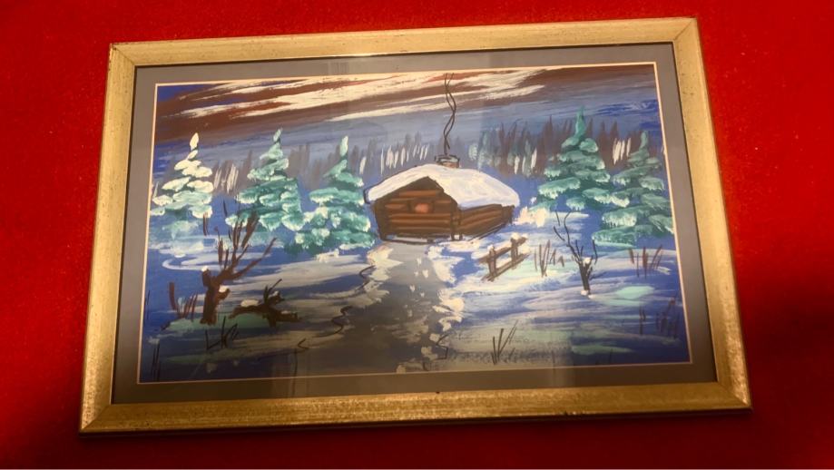 Uokvirena slika velicine 55x35 motiv zima u drvenom okviru sa staklom
