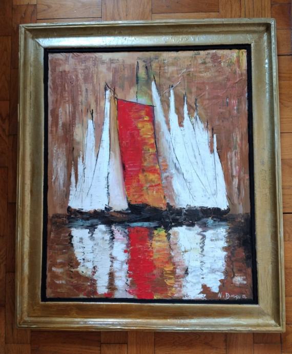 Uramljena slika vecih dimenzija, cc 70x50cm. tehnika ulje na platnu. Slikar Nikica Dragun