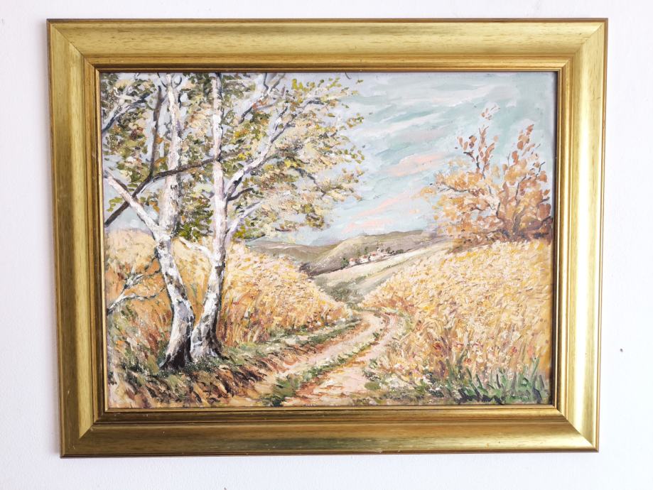 Uramljene slike različitih dimenzija i slikarskih motiva, tehnika je ulje na platnu.