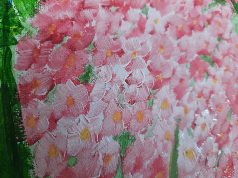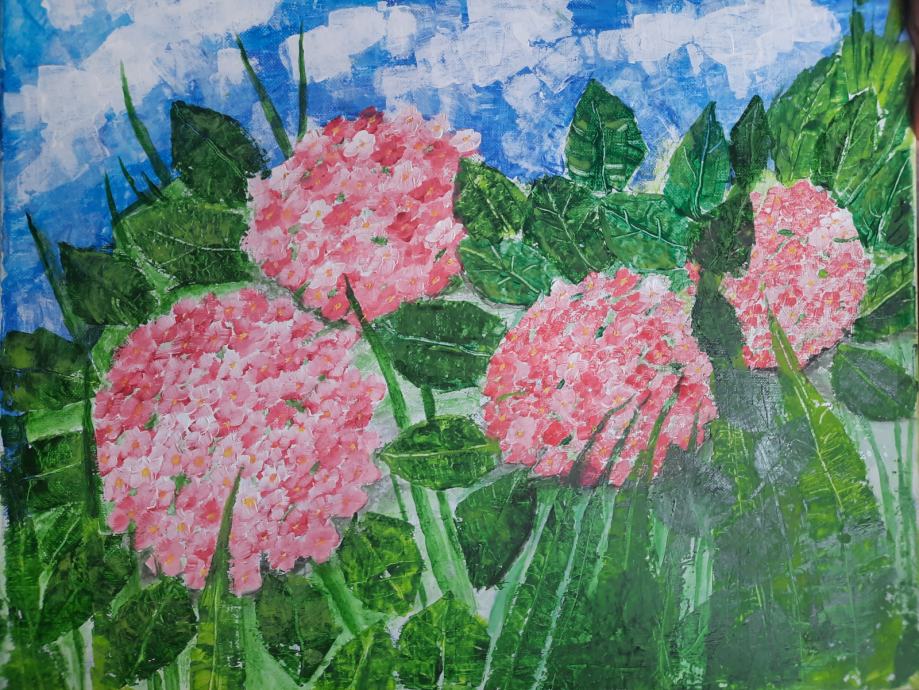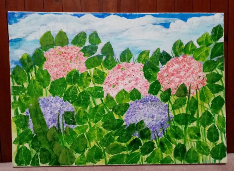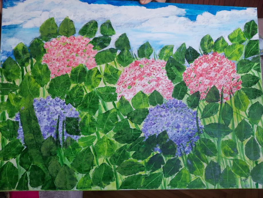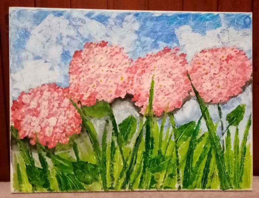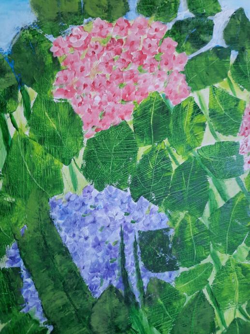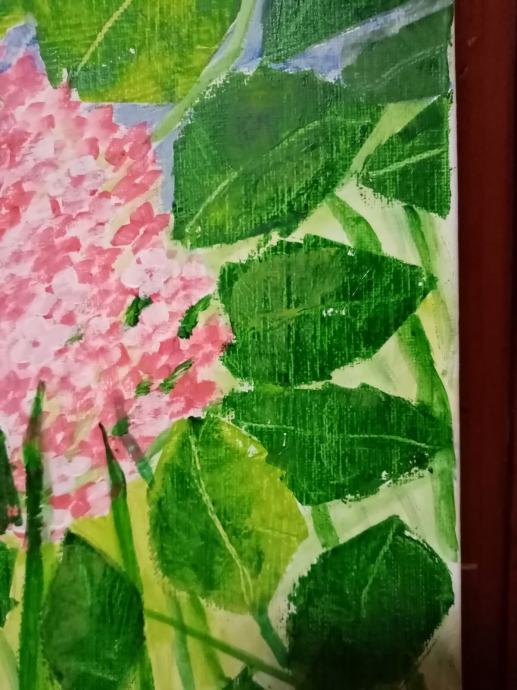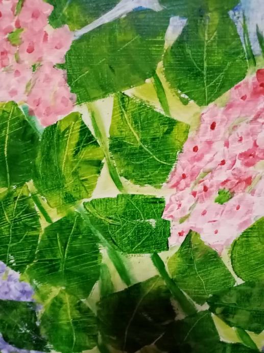 Povoljno prodajem rukom slikane umjetničke slike. Četiri komada akrila (cvijeće hortenzije) i dva komada pastela (pejzaž).