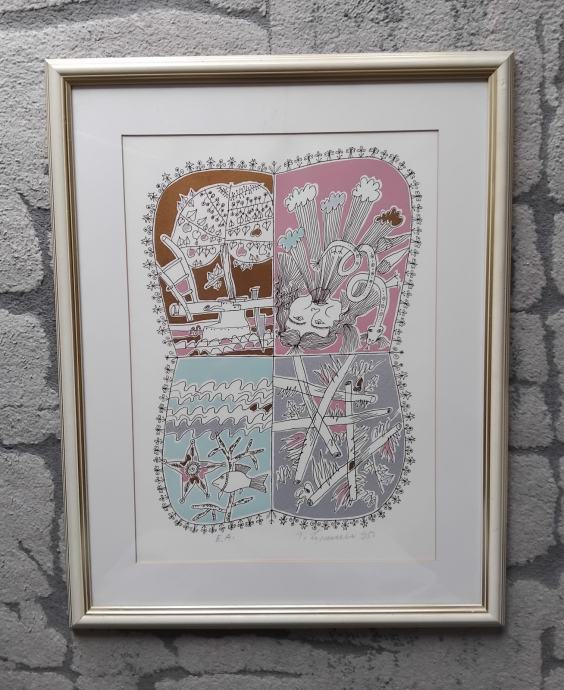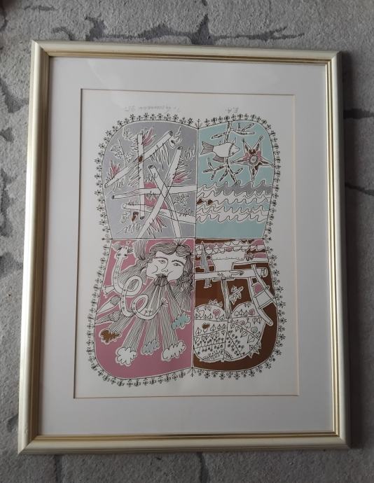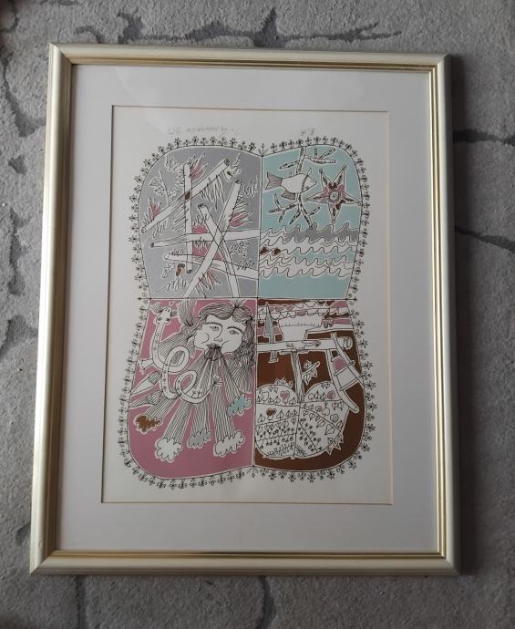 Uramljena grafika Ivana Lovrenčiča.Dimenzije sa ramom 50 x 65 cm.