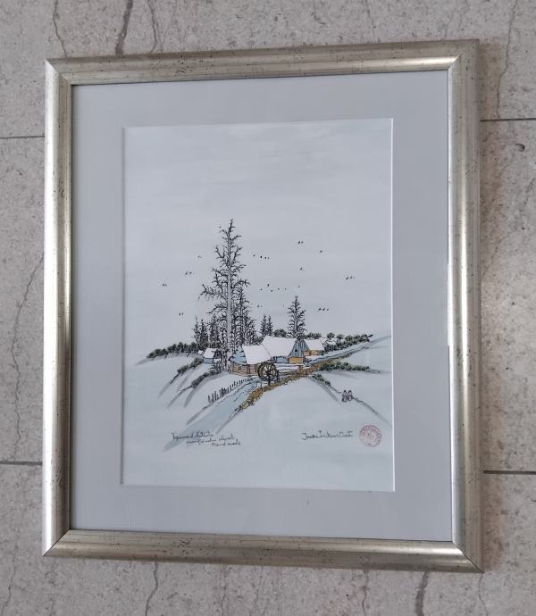 Grafike uramljene od Lackovica. Cijena svake 70 eura. Grafika Večenaja ce kod kup nje biti uramljena a cijena je tada 100 eura.