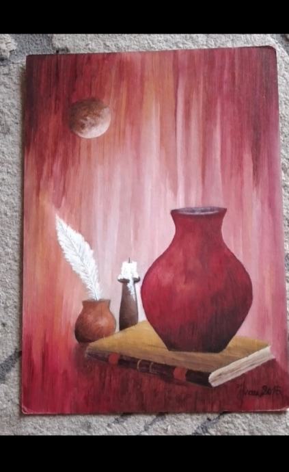 Ulja na platnu i pleksiglasu te neuramljeni pasteli.Slikar Jakovic Ivan iz Molvarskog kruga slikara . Cijene od 80 do 200 eura.