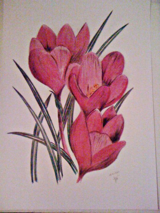 Slike "Cvijeće" rađene u tehnici olovkama u boji na papiru, dimenzije 45x30cm. Slike nisu uramljene, a rad je kvalitetan sa mnogo nijansi. Slikarica je osoba sa indvaliditetom, a bavi se aktivno slikanjem. Uramljene slike su jako lijepe. Pogodne da ukrase Vaš dom, a mogu i da budu izvanredne kao poklon nekoj Vama dragoj osobi. Cijena slike je 50 kn, svih osam 350 kn.