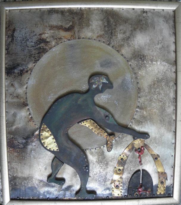 Slika je iz ciklusa “U snu san” prikazana na izložbi u Zagrebu 10. 0.2 18.02. 1994. kada je autor kao izbjeglica boravio u Zagrebu. Slika 1. dužina 57 cm x visina 64 cm. Slika je napravljena u neformalnoj tehnici "art informel" (kombinirana). Likovno oblikovani, crtež na površini slike reljefno je povezan s podlogom slike. Figura osobe je masivno obrađena, a metal druge boje daje živost. Atmosfera je tmurna, ali planet u centru slike daje iskru da je radost privremeno negdje drugdje.