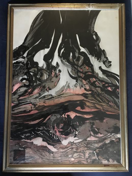 Izvrstan veliki crtež na papiru poznate hrvatske akademske slikarice Spomenke Zadrović. Dimenzije s okvirom su 108x78cm.