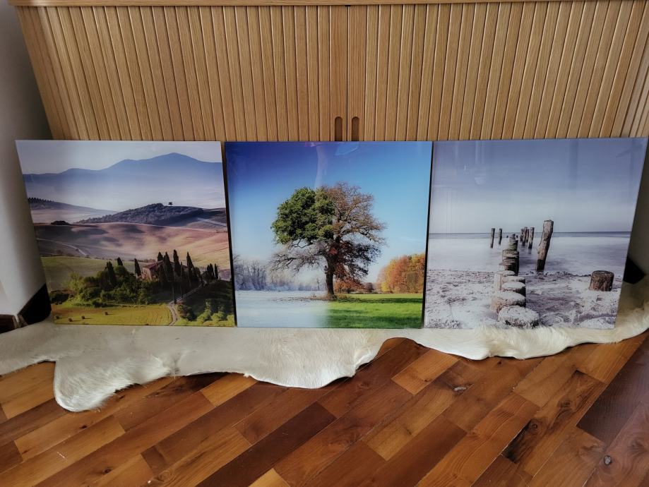 Prodajem pet staklenih slika, u odlicnom stanju, bez greske, njemacke marke eurographics. Visokokvalitetni digitalni tisak iza sjajne staklene površine idealno ističe moderni motiv. Bez obzira nalazi li se u kuhinji, blagovaonici ili dnevnom boravku, ovo stakleno umjetničko djelo je apsolutni ukras. Motivi se mogu kombinirati međusobno i složiti u modernu i skladnu galeriju slika. Posebna karakteristika ovog djela leži u osjećaju dubine i lebdećoj optici koja se postiže posebnim sustavom vješanja na poleđini slike.