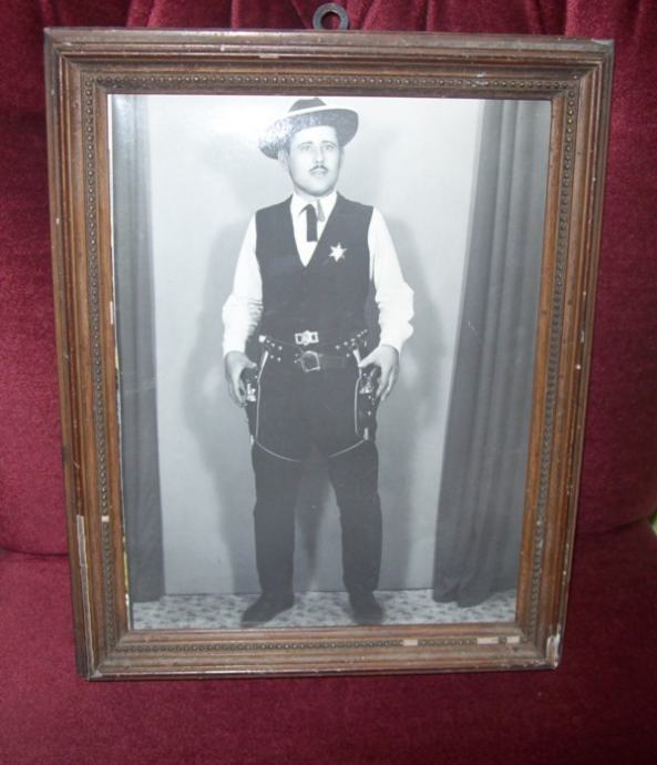 Stara fotografija u okviru, šerif s plastičnim pištoljima
