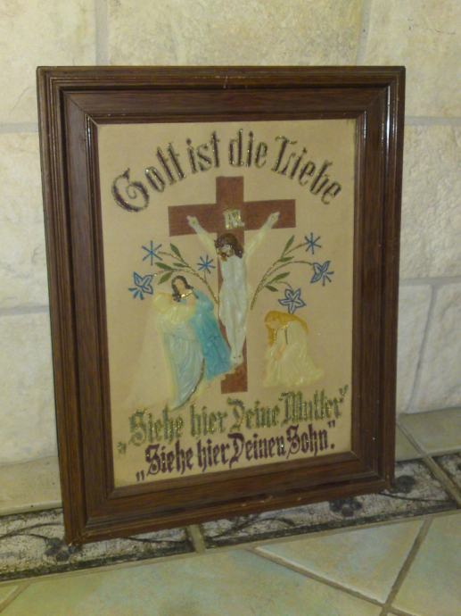 Stara reljefna religijska njemačka slika. Podrijetlo. 1 svjetski rat iz kuće podunavskih Švaba.