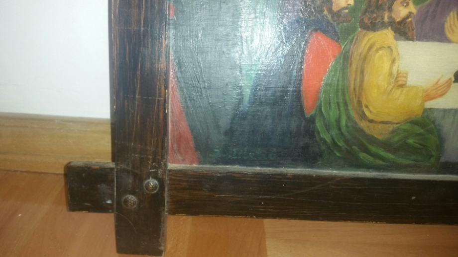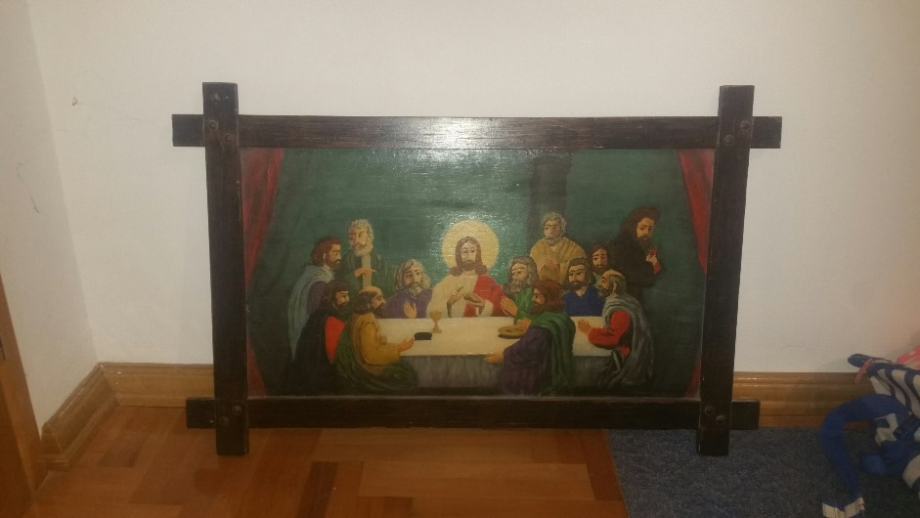 Prodajem prekrasnu staru sliku ,Tajna vecera, ulje na drvetu 90×58cm, uzivo puno ljepsa ocuvana s obzirom na starost