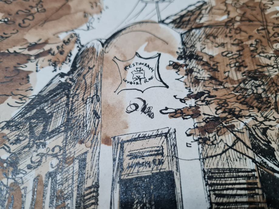 Restoran Lovački rog, 1983, dimenzije s okvirom oko 35 x 35 cm