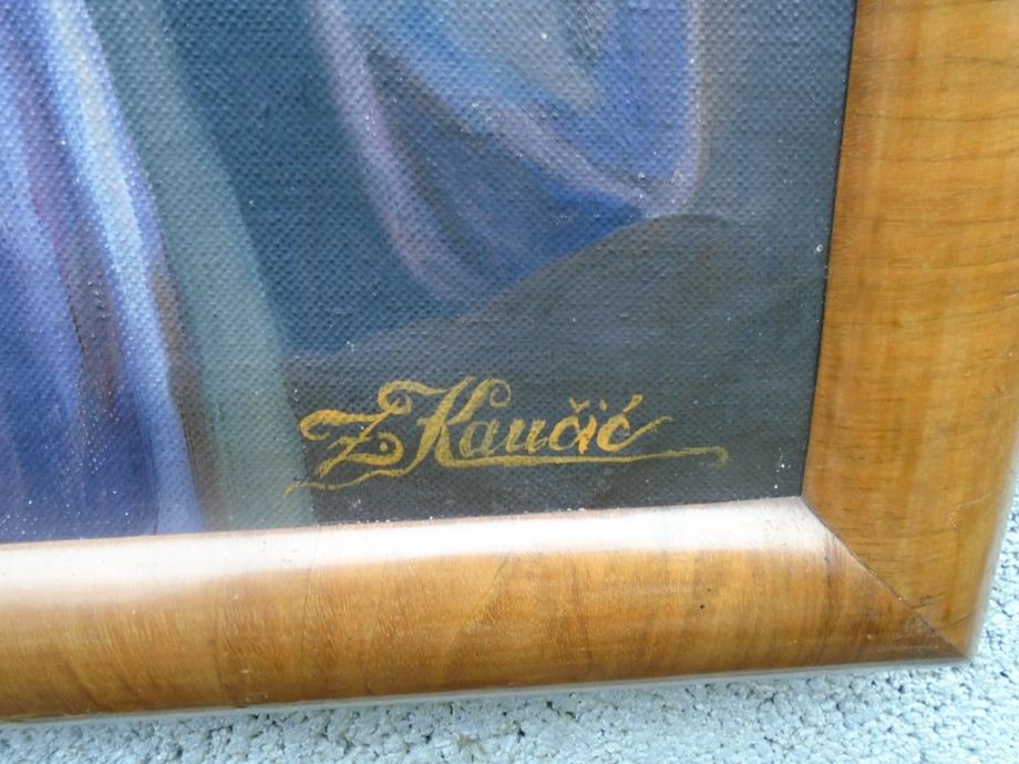 Dimenzije slike su 85 x 65 cm, sa okvirom 99 x 79 cm. Slika ima furnirani secesijski okvir koji je kao i slika u odličnom stanju.Autor slike je Z.Kaučić.