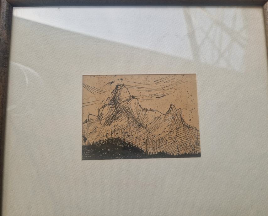 Okvir 22 x 20 cm a crtež 9 x 7 cm. Ne znam autora i ne vidim potpis.