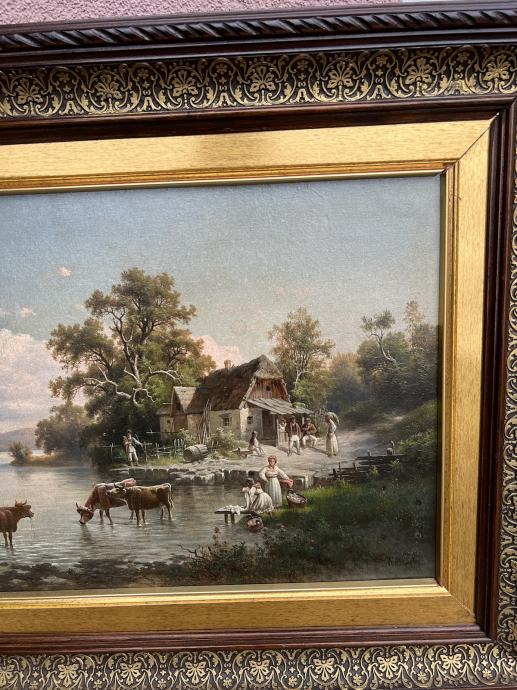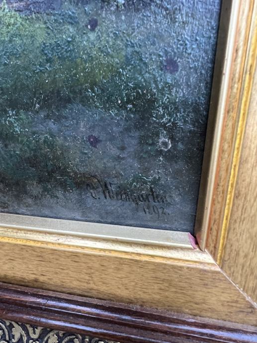 Ulje na slikarskom kartonu. Datirano 1892. Potpis Weingarten dolje desno. Dimenzije sa okvirom 67x53cm. Dimenzije same slike 46x32cm. Osobno preuzimanje.