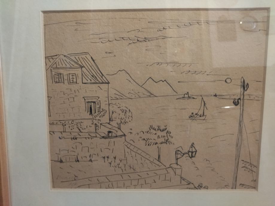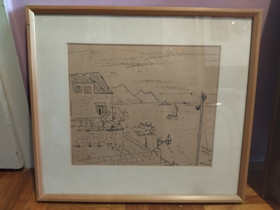starinska slika, tuš na papiru, Pavelić, potpisan, uokviren u dobrom stanju