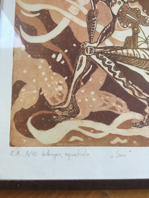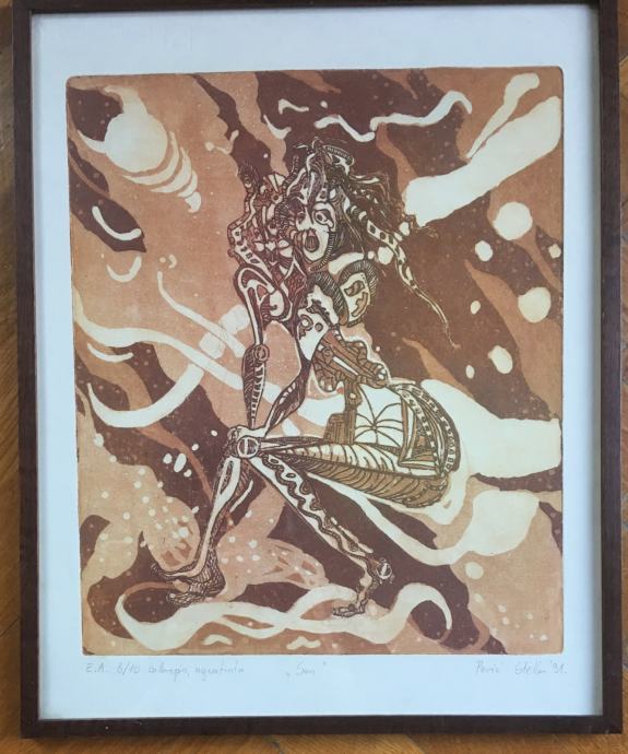 Bakopis iz 1991.g. hrvatske akademske slikarice i profesorice likovne kulture Stelle Perić. Mala serija od samo 10 primjeraka. Tiskano na kvalitetnom Fabriano papiru te galerijski uramljeno i ostakljeno. Dimenzije s okvirom su 39x32cm.