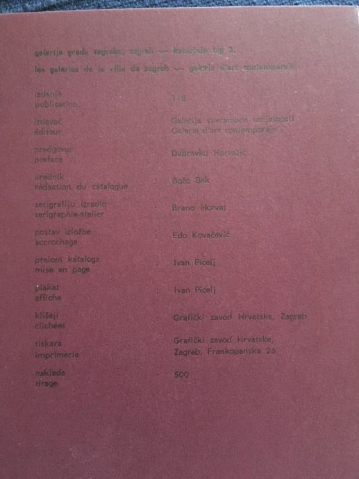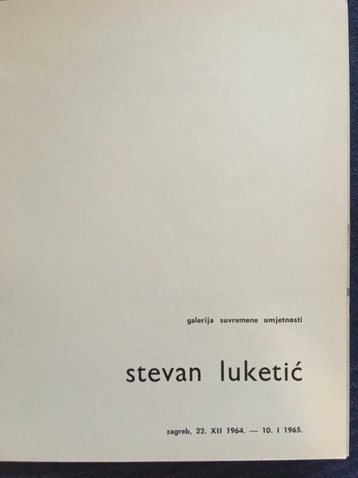 Nepotpisana originalna serigrafija čuvenog hrvatskog akademskog kipara Stevana Luketića, koja je bila dio kataloga izložbe održane u Galeriji suvremene umjetnosti u Zagrebu, 1965.g. Katalog je izdan u 500 primjeraka (tiskan u Grafičkom zavodu Hrvatske), a serigrafija je rađena u čuvenom studiju Brane Horvata, u kojemu su svoje grafike radili gotovo svi najznačajniji hrvatski umjetnici druge polovice 20. stoljeća. Dimenzije serigrafije su cca 21x20cm.