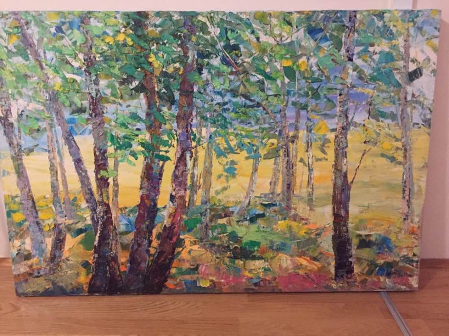 Prodajem umjetničku sliku, “Šuma”; ulje na platnu; dimenzije: 122x81 cm; slika za dnevni boravak.