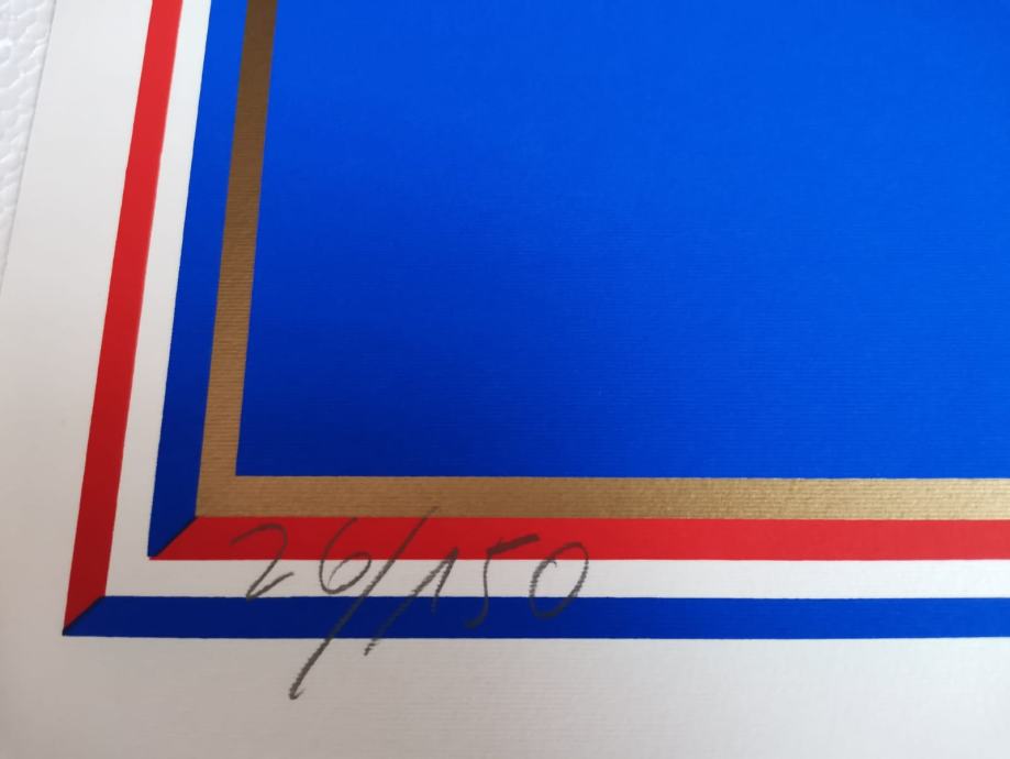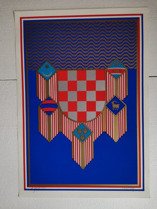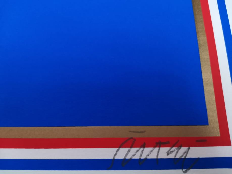 Prodajem potpisani primjerak grafike Miroslava Šuteja sa zastavom Predsjednika Republike Hrvatske.