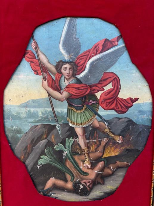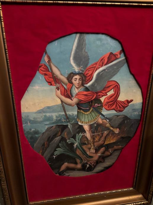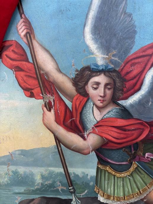 Slika prikazuje pobjedu sv. Mihaela nad sotonom te time simbolizira pobjedu dobra nad zlom.