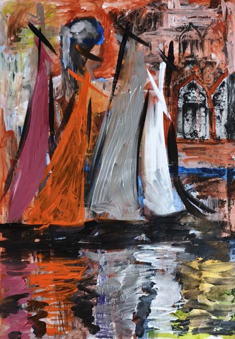 ulja i kolaž na umjetnickom kaširanom papiru po 10€
